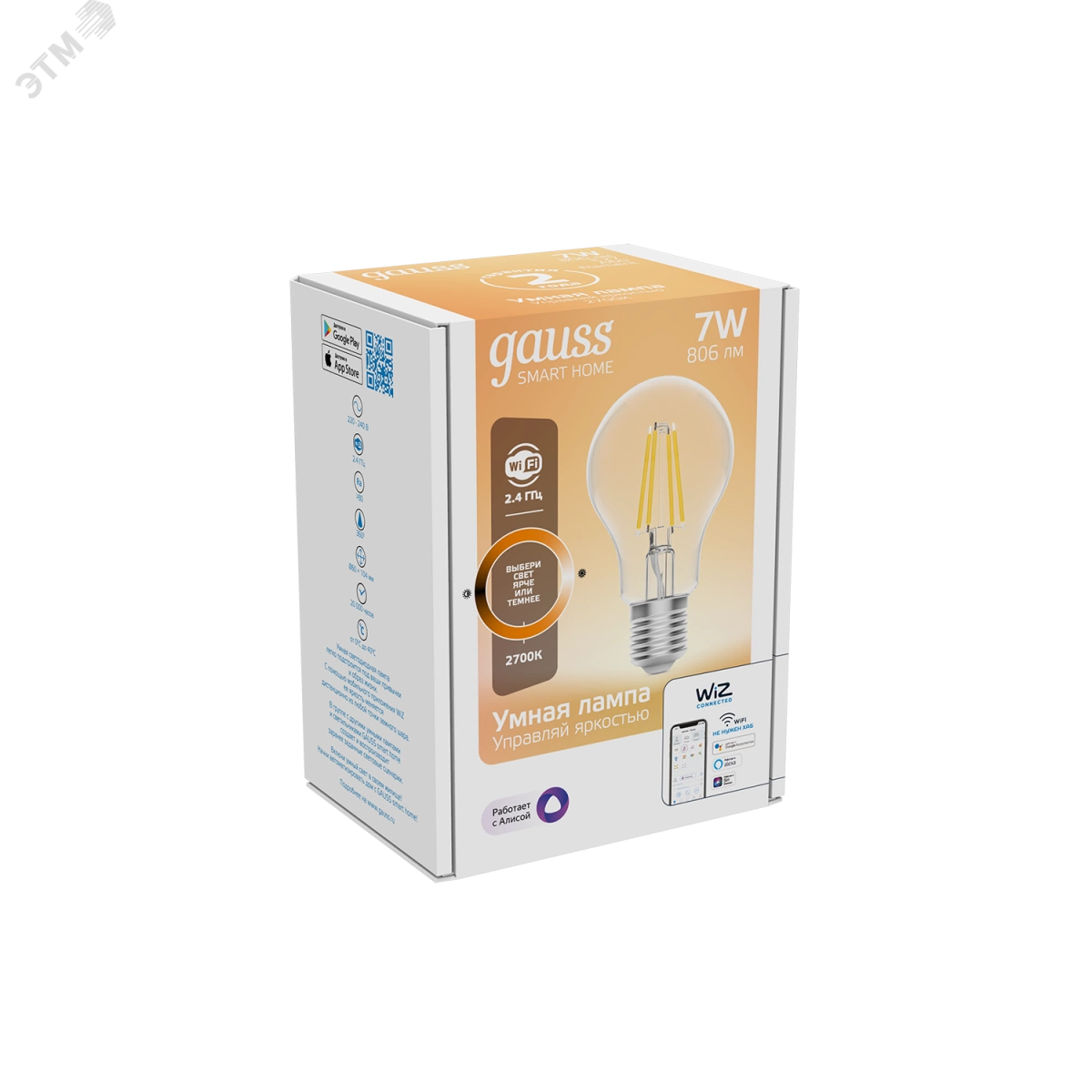 Лампа светодиодная умная LED 7 Вт 806 Лм 2700К E27 А60 диммируемая управление по Wi-Fi Smart Home Filament Gauss