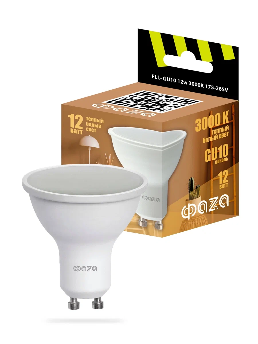 Полное описание: Лампы светодиодные LED 12 Вт 760 Лм 3000К GU10 (софит) теплая 230/50 ФАZA (10 штук в упаковке)