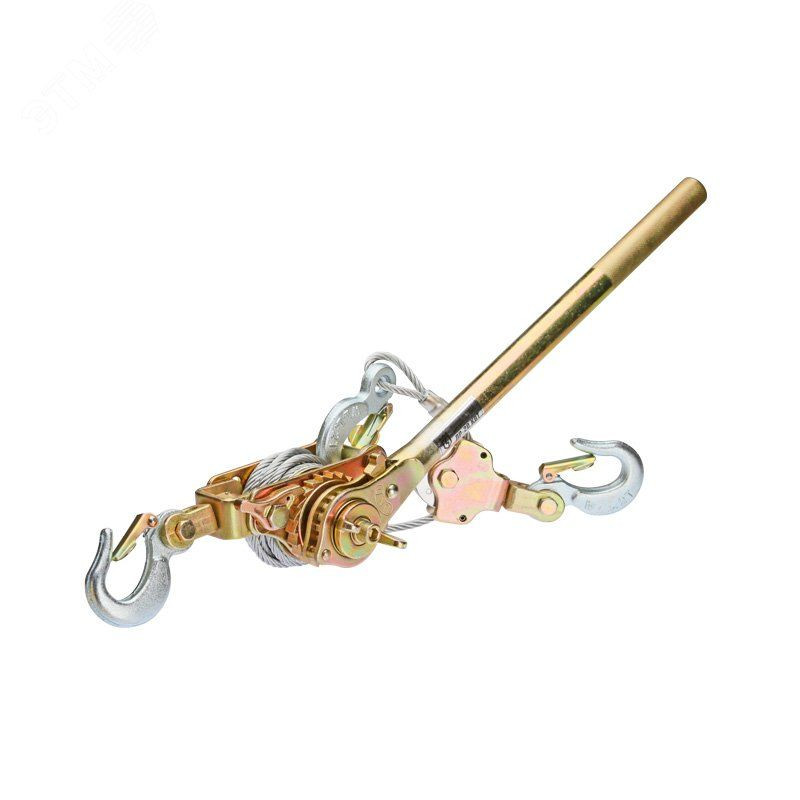 Применяется для натяжения проводов СИП и оптоволоконных кабелей. Обеспечивает перестановку провода СИП с монтажного ролика на поддерживающие и анкерные зажимы. Фрикционно-храповой механизм с переключателем, обеспечивающим пошаговое натяжение и отдачу, 3 крюка. Два режима работы - с блоком и без блока. Длина троса - с блоком 1.6м. без блока 3.0м (± 0.1 м). Повышенная гибкость троса