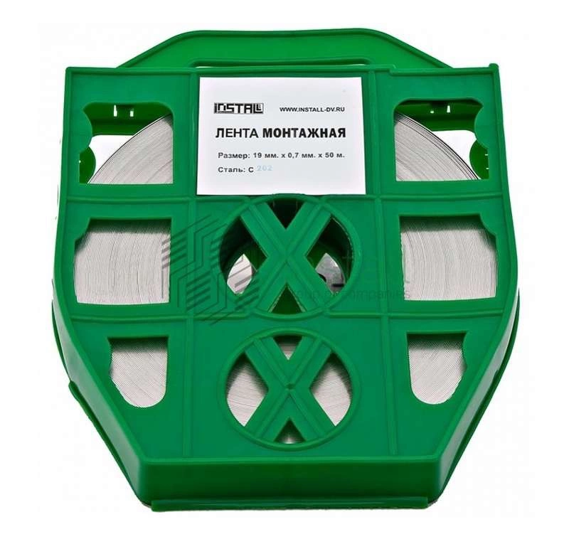 Представляет собой полосу из стали, шириной 20 мм. В рулоне 50 м. Устойчивость к нагрузке составляет 1050 Н. В упаковке в виде пластикового кейса с ручкой для переноски.