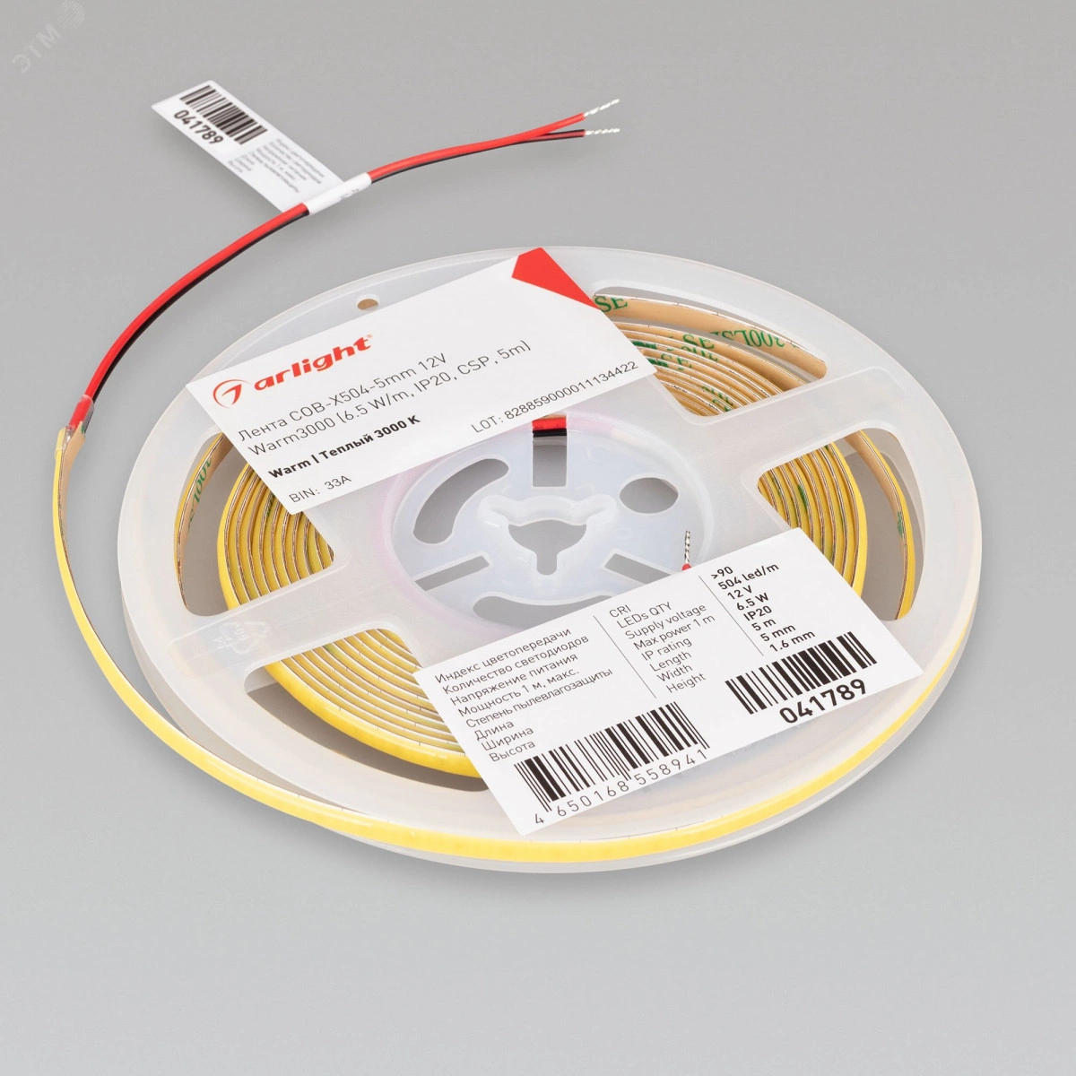 Лента COB-X504-5мм 12V Warm3000 (6.5 W/m, IP20, CSP, 5м) (-)