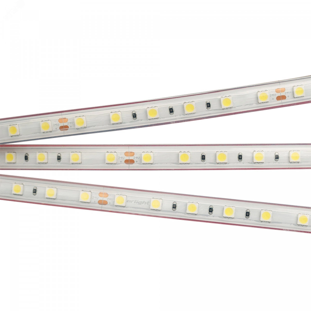 Светодиодная гибкая лента RTW-B60, герметичная IP67 (PS-силиконовая экструзия). Светодиоды 5060, 60 шт/м (300 шт на 5 м), белая плата 13 мм, скотч 3M. цвет теплый 3000 K, цветопередача CRI-85, угол 120 градусов . Питание 24V, мощность 14.4 Вт/м (72 Вт на 5 м). Размеры 5000x13x5 мм. Мин. отрезок 100 мм, 6 светодиодов.