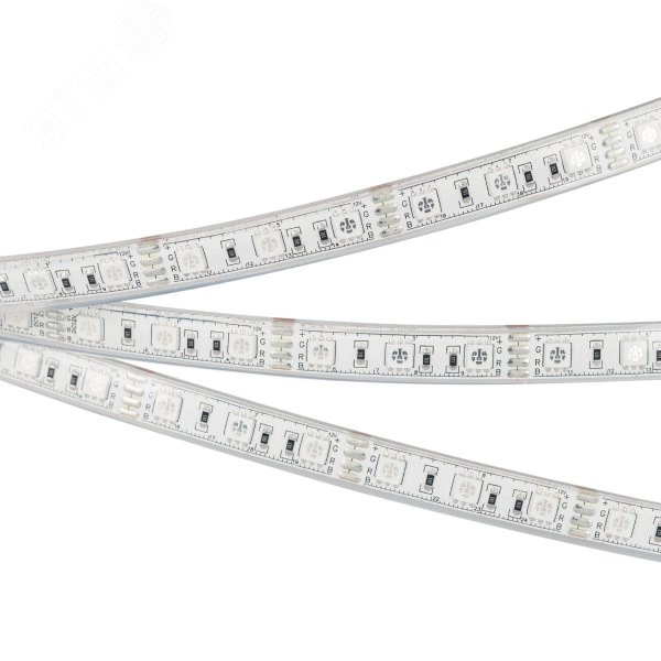 Светодиодная лента RTW-PU-B60, герметичная IP68 (PU-сплошной полиуретан), подходит для использования под водой на глубине до 2м. Светодиоды 5060, 60 шт/м (300 шт на 5 м), белая плата, ширина 12.5 мм. Цвет RGB, угол 120 градусов . Питание 12V, мощность 14.4 Вт/м (72 Вт на 5 м). Размеры 5000x12.5x5.6 мм. Мин. отрезок 50 мм, 3 светодиода. Лента крепится с помощью скоб, скобы идут в комплекте (5шт), 3M скотч отсутствует.