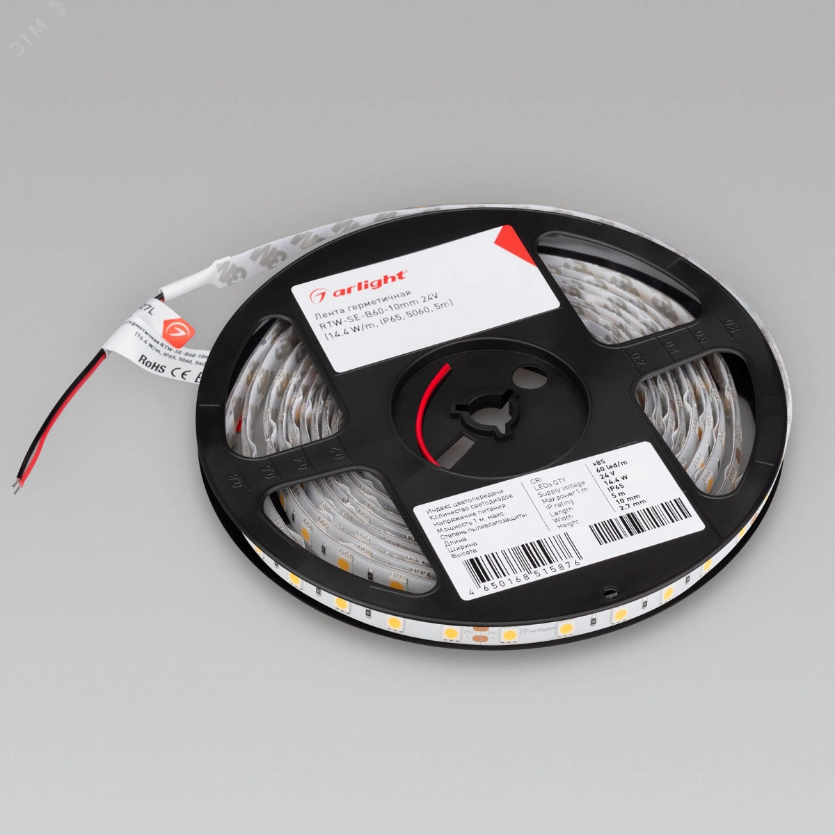Герметичная светодиодная лента шириной 10 мм с высокой степенью пылевлагозащиты IP65 (силикон сверху). Светодиоды SMD 5060 (60 шт/м) с теплым белым цветом свечения (3000 К), индекс цветопередачи CRI 85. Мощность 14.4 Вт/м, напряжение питания 24 В. Минимальный отрезок 100 мм (6 светодиодов). Освещение интерьеров и создание декоративной подсветки, оформление наружной рекламы и витрин. Возможно использование во влажных помещениях.