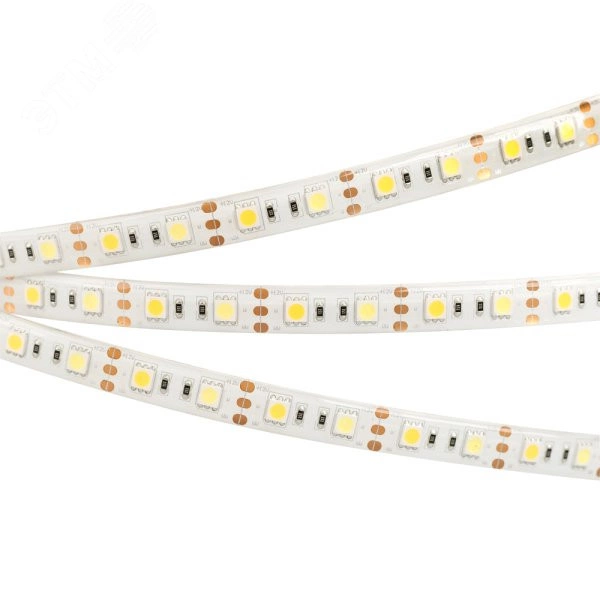 Светодиодная лента RTW-SE-B60, герметичная (SE-силиконовый верхний слой). Светодиоды 5060, 60 шт/м (300 шт на 5 м), белая плата, ширина 12 мм, скотч 3M. Цвет MIX БЕЛЫЙ 6000 K плюс ТЁПЛЫЙ 3000 K, цветопередача CRI-85, угол 120 градусов . Питание 12 B, мощность 14.4 Вт/м (72 Вт на 5 м). Размеры 5000x12x2.7 мм. Мин. отрезок 33.3 мм, 2 светодиода.