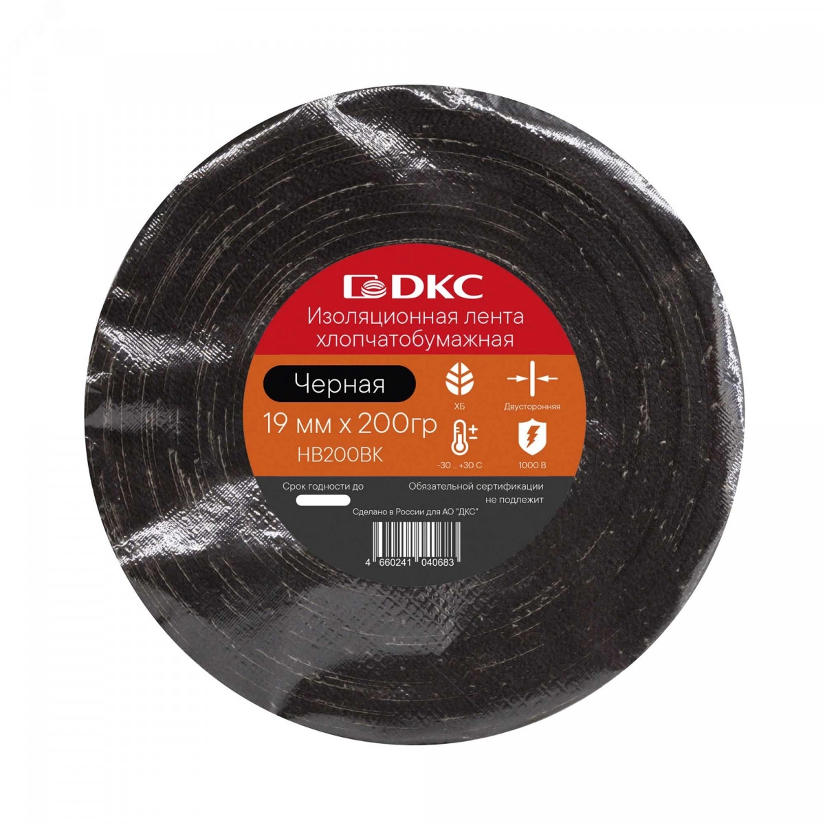 Лента изоляционная ХБ 20мм (200гр) двухсторонняя в рулоне Черная