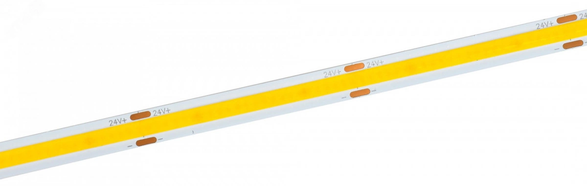 Низковольтная светодиодная лента 24 В COB с количеством 480 светодиодов на 1 м торговой марки IEK позволяет создавать декоративное освещение мебели, ниш, барных стоек, окон и витрин, а также подсветку деталей интерьера - многоуровневых и подвесных потолков, карнизов, плинтусов. В отдельных случаях используется в качестве основного освещения. Светодиодные системы подсветки включают в себя источник света светодиодную ленту и принадлежности к ней (источники питания – драйверы LED ИПСН, контроллеры управления и коннекторы). Все необходимые принадлежности представлены в ассортименте IEK. Технология COB (Chip On Board - светодиоды расположены прямо на плате и защищены единым слоем люминофора) позволяет размещать значительно больше светодиодов, чем на стандартных светодиодных лентах. Благодаря этому создается эффект свечения ''единой линией'', а сами светодиоды практически не видны поштучно.