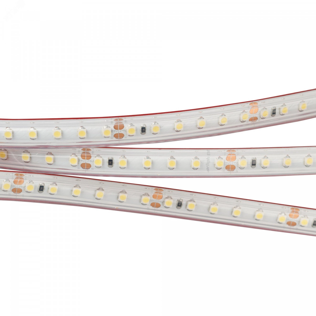 Светодиодная лента RTW-PS-A120, герметичная (PS-силиконовая экструзия). Светодиоды 2835, 120 шт/м (600 шт на 5 м), белая плата, ширина 10 мм, скотч 3M. цвет теплый 3000 K, цветопередача CRI-85, угол 120 градусов . Питание 24V, мощность 9.6 Вт/м (48 Вт на 5 м). Размеры 5000x10x5 мм. Мин.отрезок 50 мм, 6 светодиодов.
