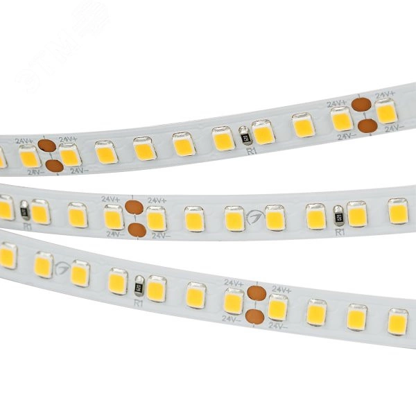 Светодиодная лента RT-A160, открытая. Светодиоды 2835, 160 шт/м (800 шт на 5 м), белая плата, ширина 8 мм, скотч 3M. цвет теплый 3000 K, цветопередача CRI-85, угол 120 градусов . Питание 24V, мощность 12 Вт/м (60 Вт на 5 м). Размеры 5000x8x1.5 мм. Мин. отрезок 50 мм, 8 светодиодов.