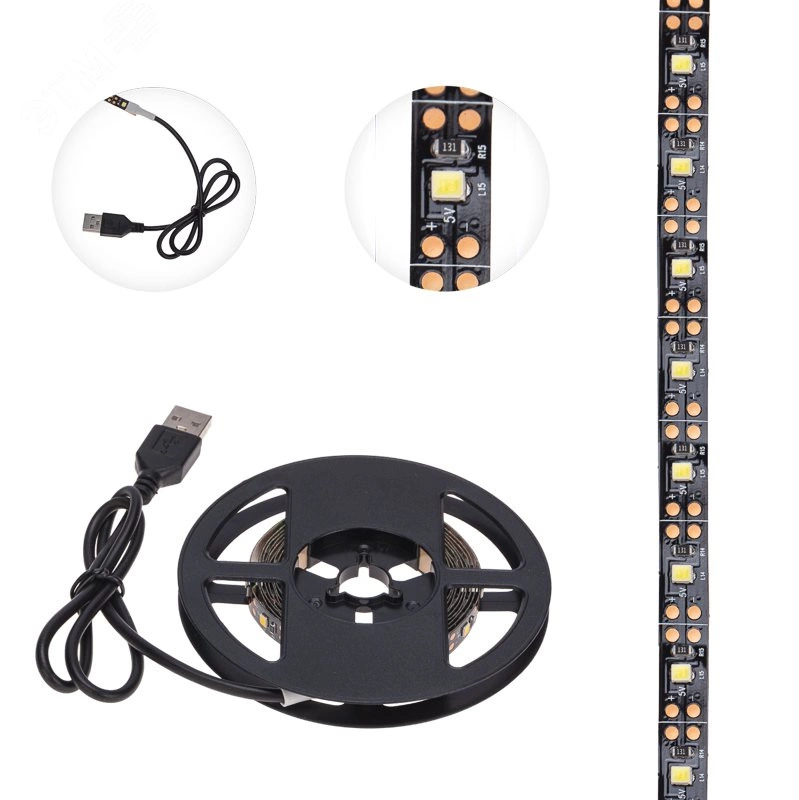 Лента LED с USB-коннектором 5 В IP23 SMD 2835 60 LED/м 2 м теплый белый (2700 K) LAMPER