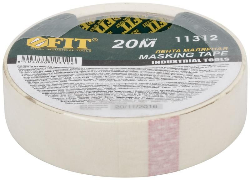 Полное описание: Лента малярная креппированная клейкая 25ммх20м FIT 11312