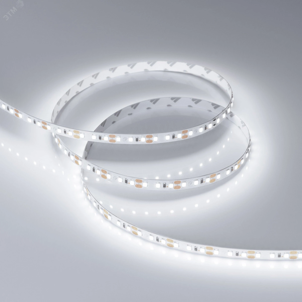 Гибкая лента PRO, светодиоды smd 2835, 120 шт/м (600шт на 5м), белая плата 8 мм, скотч 3М. Цвет БЕЛЫЙ 5800-6500K. Питание 12V, мощность 14.4 Вт/м (72 Вт на 5м), угол 120 градусов , цветопередача CRI-85. Размеры 5000х8x1.5мм. Мин.отрезок 25мм, 3 светодиода. Устанавливайте на алюминиевый профиль.