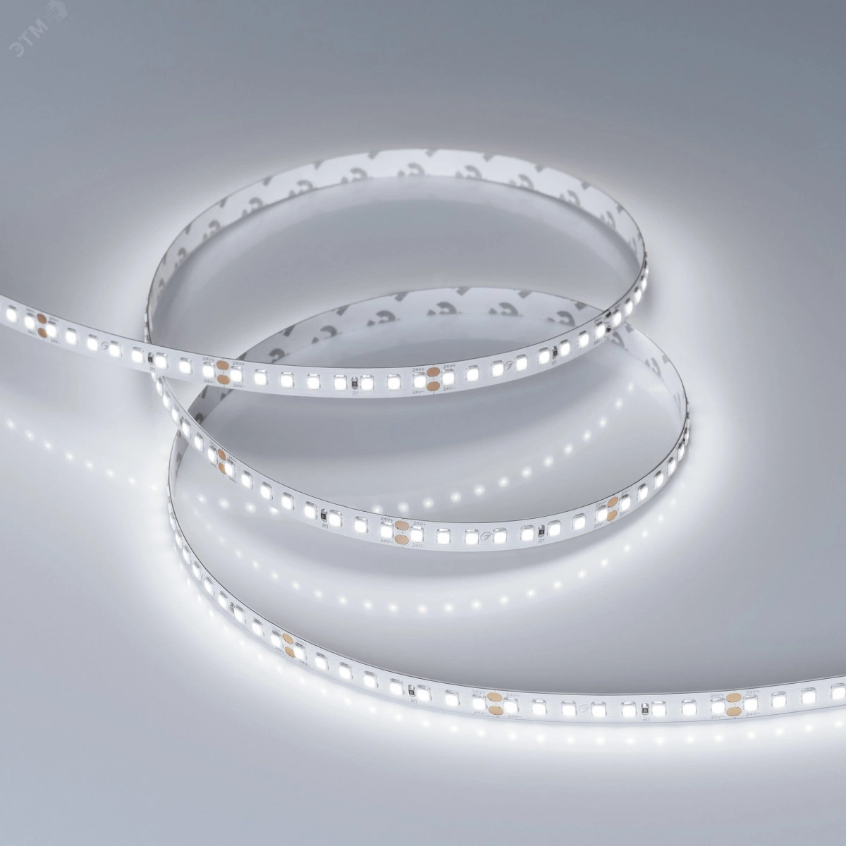 Светодиодная лента RT-A160, открытая. Эффективность 150 лм/Вт, светодиоды 2835, 160 шт/м (800 шт на 5 м), белая плата, ширина 8 мм, скотч 3M. Цвет БЕЛЫЙ 6000 K, цветопередача CRI-85, угол 120 градусов . Питание 24V, мощность 12 Вт/м (60 Вт на 5 м). Размеры 5000x8x1.5 мм. Мин. отрезок 50 мм, 8 светодиодов.