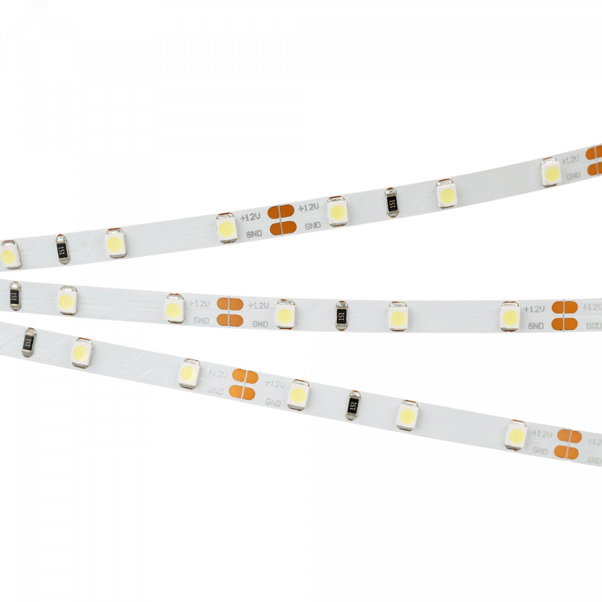Светодиодная узкая лента RT-A60, открытая. Светодиоды 2835, 60 шт/м (300 шт на 5 м), белая плата, ширина 5 мм, скотч 3M. Цвет БЕЛЫЙ 6000 K, цветопередача CRI-85, угол 120 градусов . Питание 12V, мощность 4.8 Вт/м (24 Вт на 5 м). Размеры 5000x5x1.5 мм. Мин. отрезок 50 мм, 3 светодиода.