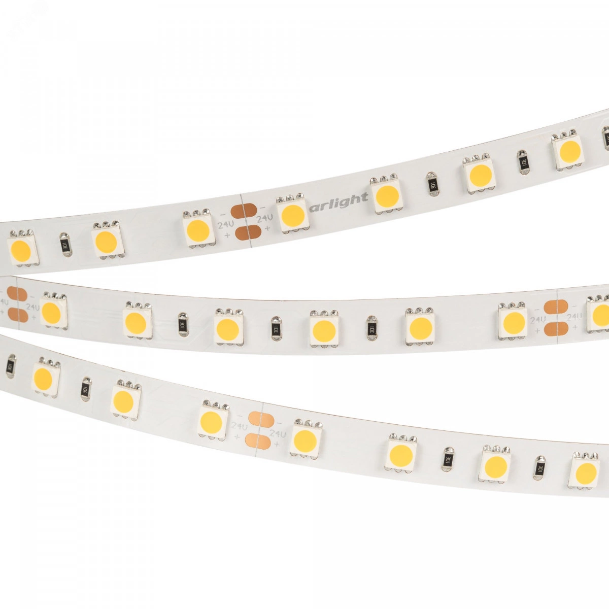 Светодиодная лента RT-B60, открытая. Светодиоды 5060, 60 шт/м (300 шт на 5 м), белая плата, ширина 10 мм, скотч 3M. Цвет ДНЕВНОЙ 4000 K, цветопередача CRI-85, угол 120 градусов . Питание 24V, мощность 14.4 Вт/м (72 Вт на 5 м). Размеры 5000x10x2.2 мм. Мин. отрезок 100 мм, 6 светодиодов.