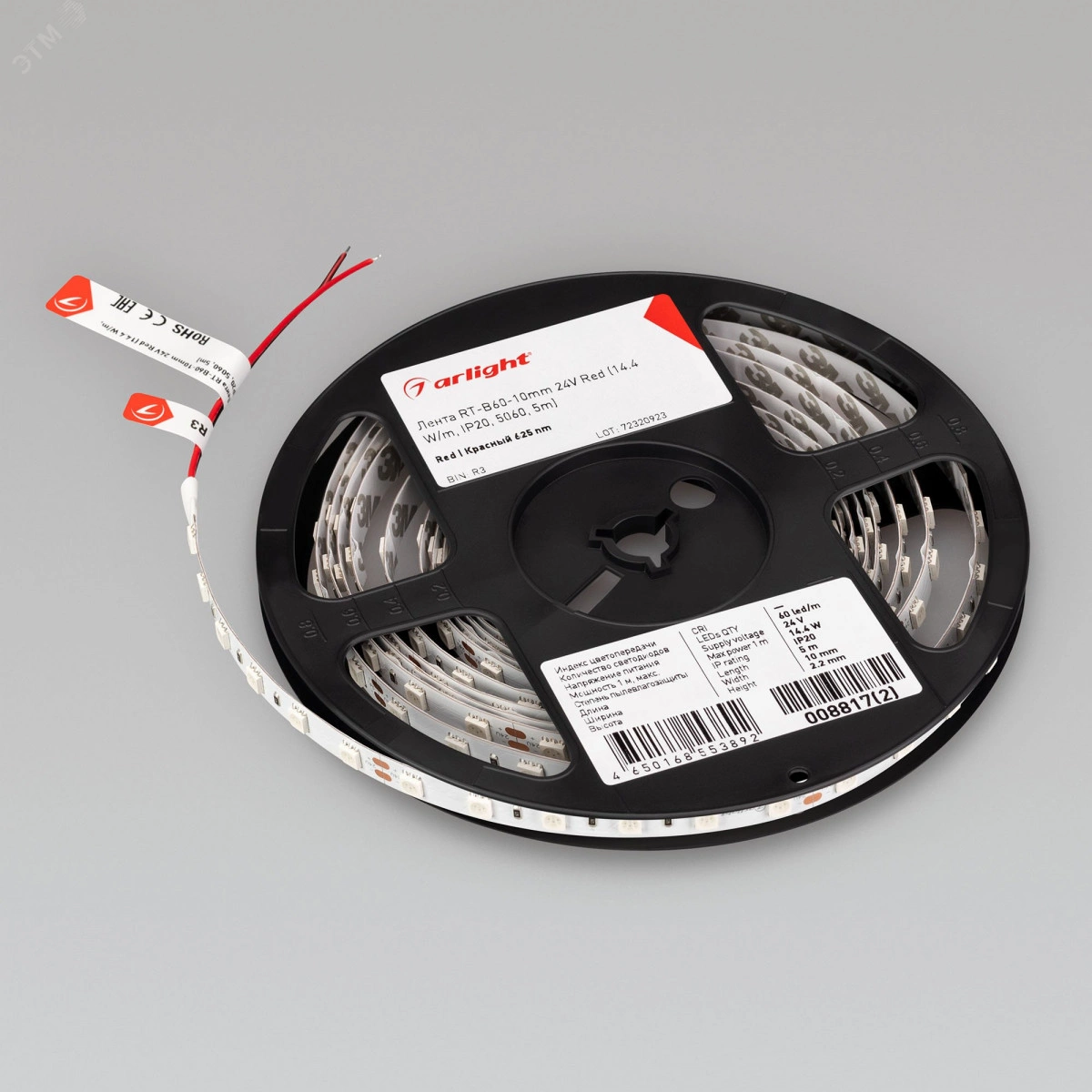 Светодиодная лента LUX шириной 10 мм и мощностью 14.4 Вт/м. Светодиоды SMD 5060 (60 шт/м) красного цвета свечения. Напряжение питания 24 В. Минимальный отрезок 100 мм (6 светодиодов). Декоративная подсветка интерьера, потолочных ниш, рабочих зон кухни, мебели. Подсветка рекламных конструкций и витрин.