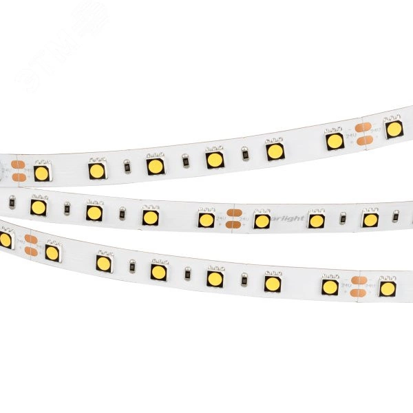 Светодиодная лента RT-B60, открытая. Светодиоды 5060, 60 шт/м (300 шт на 5 м), белая плата, ширина 10 мм, скотч 3M. цвет теплый 3000 K, цветопередача CRI 95..98, угол 120 градусов . Питание 24V, мощность 14.4 Вт/м (72 Вт на 5 м). Размеры 5000x10x2.2 мм. Мин. отрезок 100 мм, 6 светодиодов.