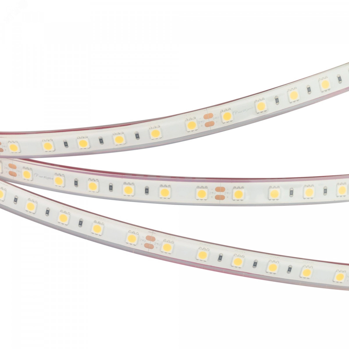 Лента RTW 2-5000PGS 24V Cool 2x (5060, 300 LED, LUX) (Arlight, 14.4 Вт/м, IP67)