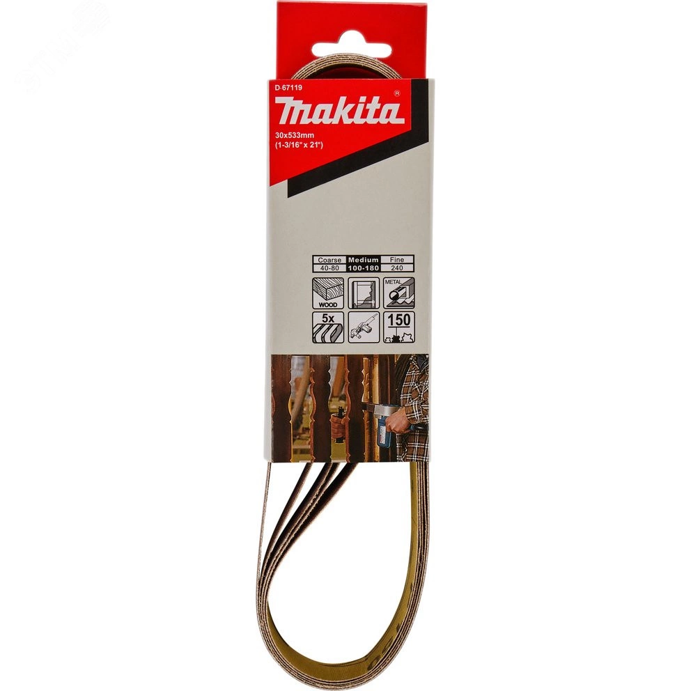 Makita D-67119 - экономичная абразивная лента. Она состоит из оксида алюминия K150. Данная лента идеально подходит для обработки древесины, лакированного дерева и стали. Она предназначена для шлифовальных машин и сочетается с моделью машины - Makita 9031. Выполнена оснастка из высококачественных материалов.