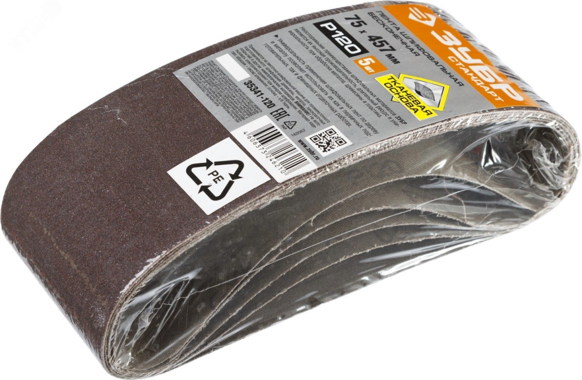Лента шлифовальная 75х457 мм, P120, СТАНДАРТ, для ЛШМ, 5 шт.