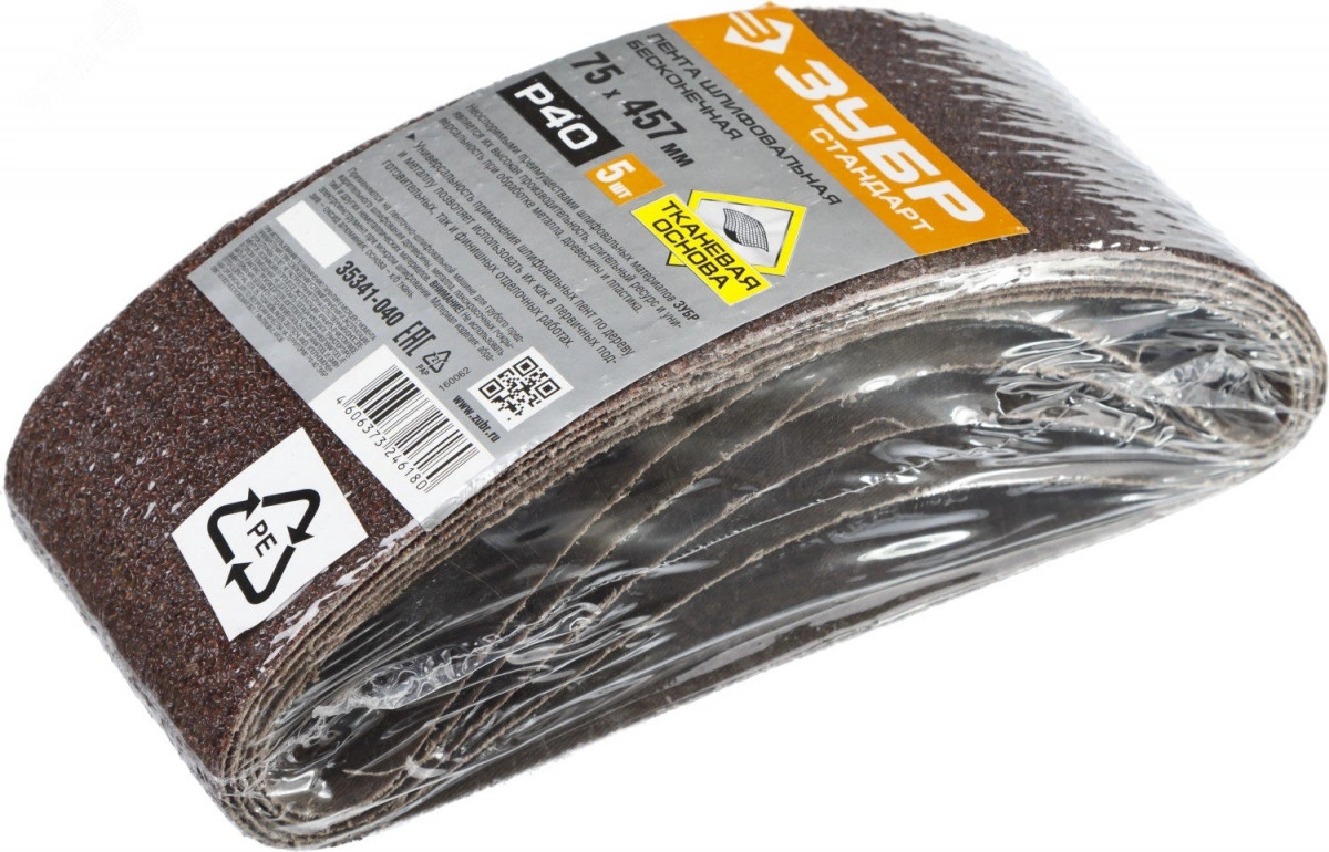 Лента шлифовальная 75х457 мм, P40, СТАНДАРТ, для ЛШМ, 5 шт.