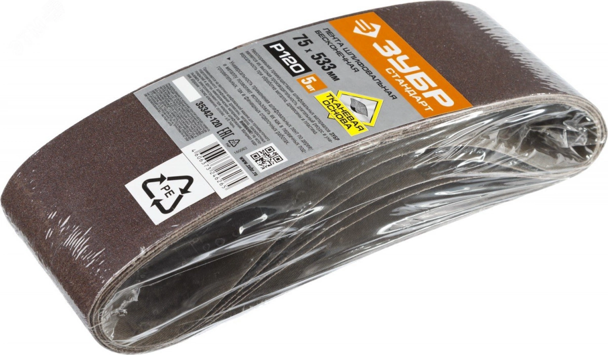 Лента шлифовальная 75х533 мм, P120, СТАНДАРТ, для ЛШМ, 5 шт.