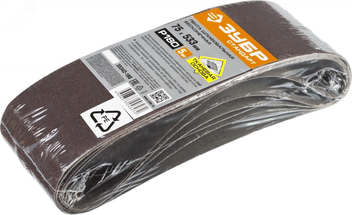 Лента шлифовальная 75х533 мм, P180, СТАНДАРТ, для ЛШМ, 5 шт.