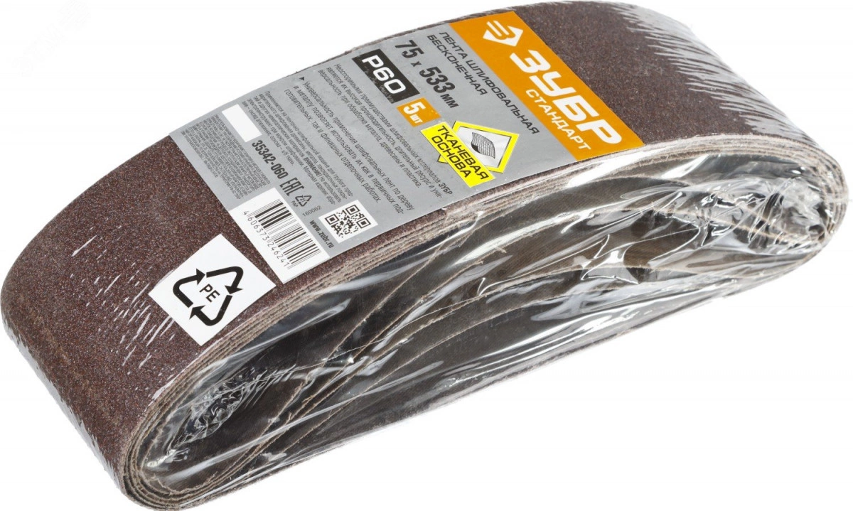 Лента шлифовальная 75х533 мм, P60, СТАНДАРТ, для ЛШМ, 5 шт.
