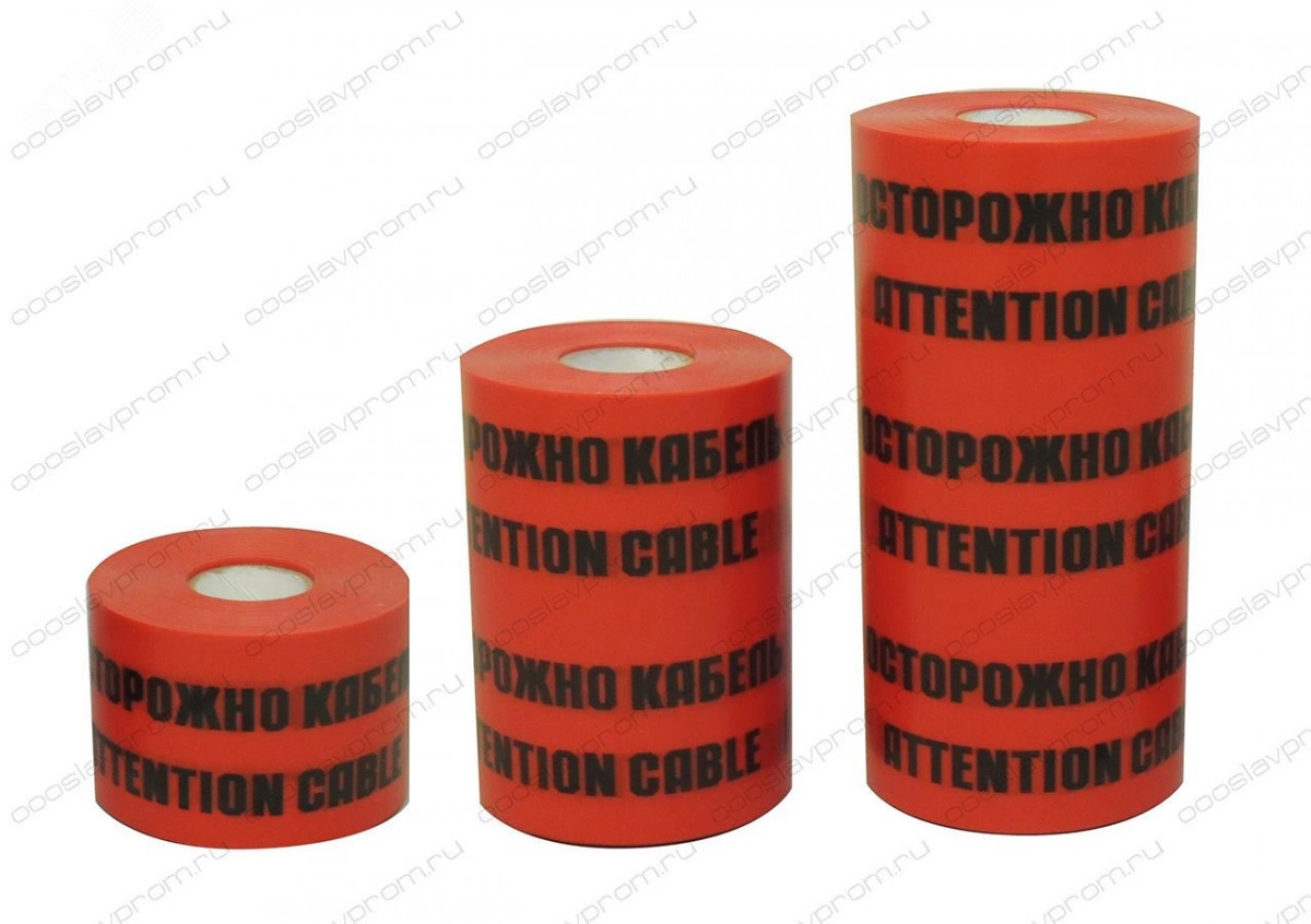 Лента сигнальная красная с нанесенным логотипом черного цвета `Осторожно кабель. Attention cable` предназначается для идентификации электрических кабелей. Применение такой сигнальной ленты обеспечивает экономию на материалах, используемых для защиты силового кабеля. Длина рулона - 100м. Лента укладывается в траншеи чуть выше проложенного кабеля на 0,5м. Может использоваться в почвах любого типа. После укладки она не рвется, не подвержена истираниям, не теряет своих цветовых качеств.