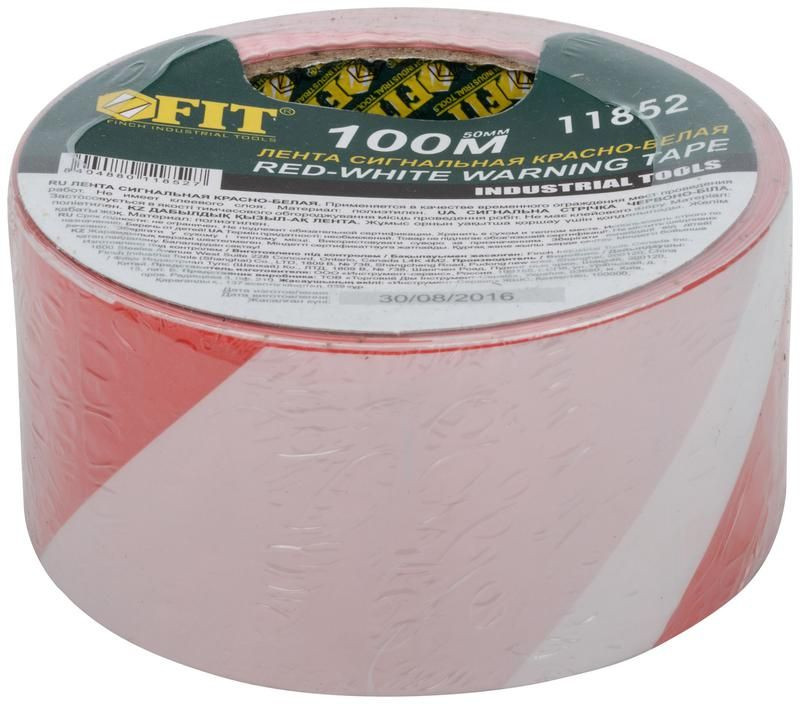 Лента сигнальная 50ммх100м красн.-бел. FIT 11852