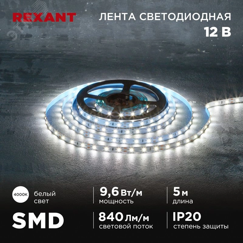Лента светодиодная 12В SMD2835 9,6Вт/м 60LED/м 4000K 8мм 5м IP20
