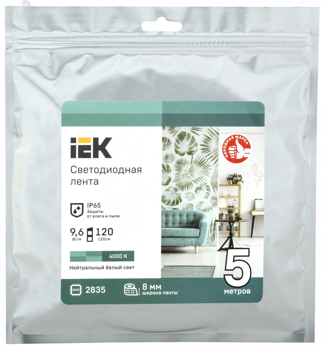 Лента светодиодная 5м LSR-2835NW60-4,8-IP65-12В IEK