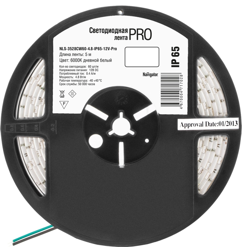 Лента светодиодная 71 702 NLS-3528CW60-4.8-IP65-12V-Pro R5 (уп.5м) Navigator 4670004717028 – средство освещения.