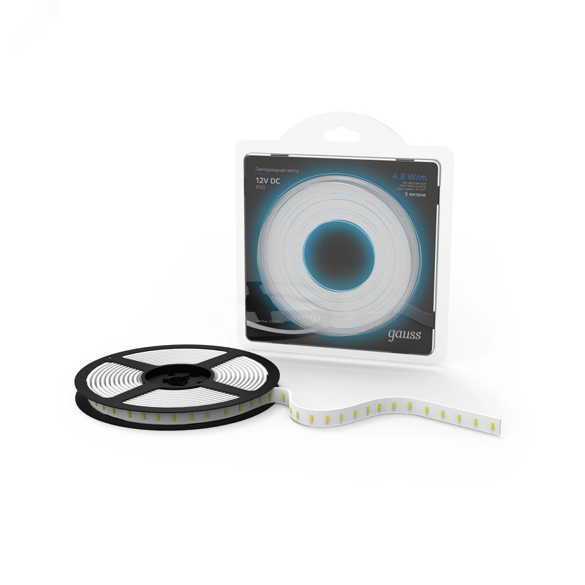 Лента светодиодная LED 2835/60-SMD 4,8 Вт/м 210 Лм/м синий IP20 12 В DC 8 мм (блистер 5 м) Black Gauss