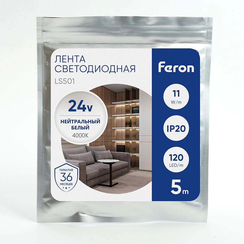 Лента светодиодная 24V Feron LS50х50мм, 5000х8х1.22мм. Двойной медный слой в конструкции - высокая проводимость и наилучший теплоотвод. Устойчива к сгибам, легче монтируется и дольше работает. Идеальна как для подсветки, так для основного освещения.