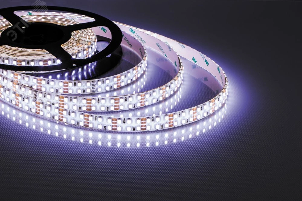 Лента светодиодная 12V Feron LS615, 240 х SMD2835, 19,2W/m, IP65, 6500К (холодный белый), кратность резки 25 мм, 5000 х 14 х 3,8мм. Двойной медный слой в конструкции - высокая проводимость и наилучший теплоотвод. Устойчива к сгибам, легче монтируется и дольше работает. Идеальна для основного освещения.
