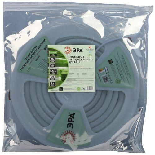 Лента светодиодная LS2835-9.6-120-24-G-IP68-5м 24В термостойкая для бани зел. (в комплекте: 2 заглушки; 10 крепежей)(уп.5м) Эра Б0062354