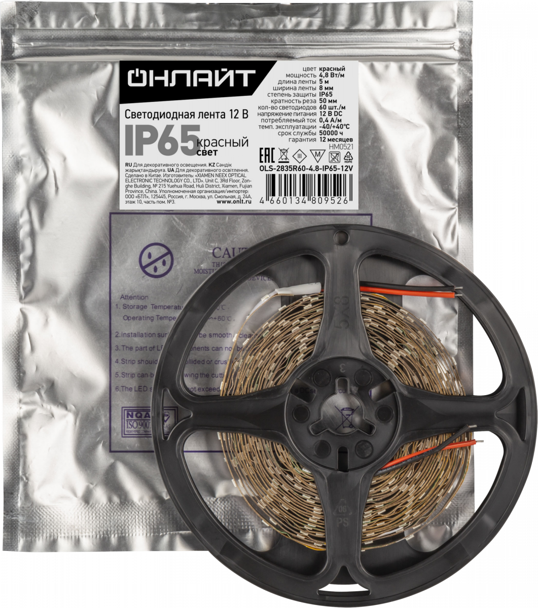 Лента светодиодная OLS-2835R60-4.8-IP65-12V 5м