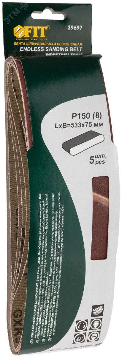 Ленты шлифовальные бесконечные, водостойкие, на тканевой основе, 5 шт, 75х533 мм Р 150