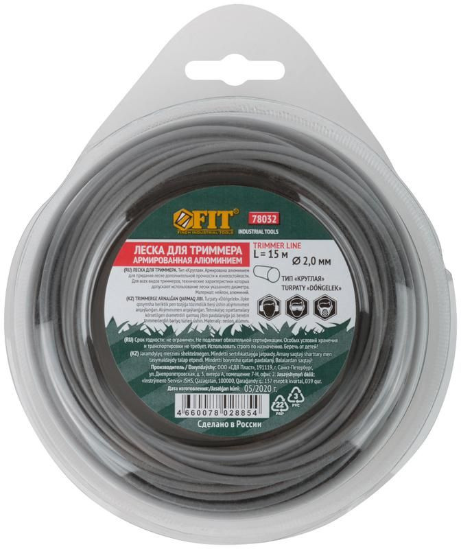 Леска для садовых триммеров армированная алюм. "Круглая" 2.0ммх15м FIT 78032