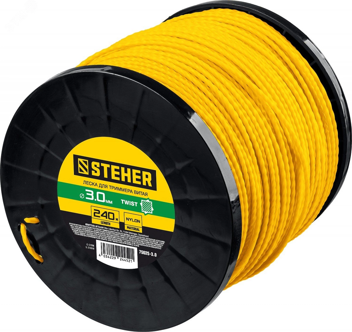 Леска для триммера витой квадрат, 3.0 мм, 240 м