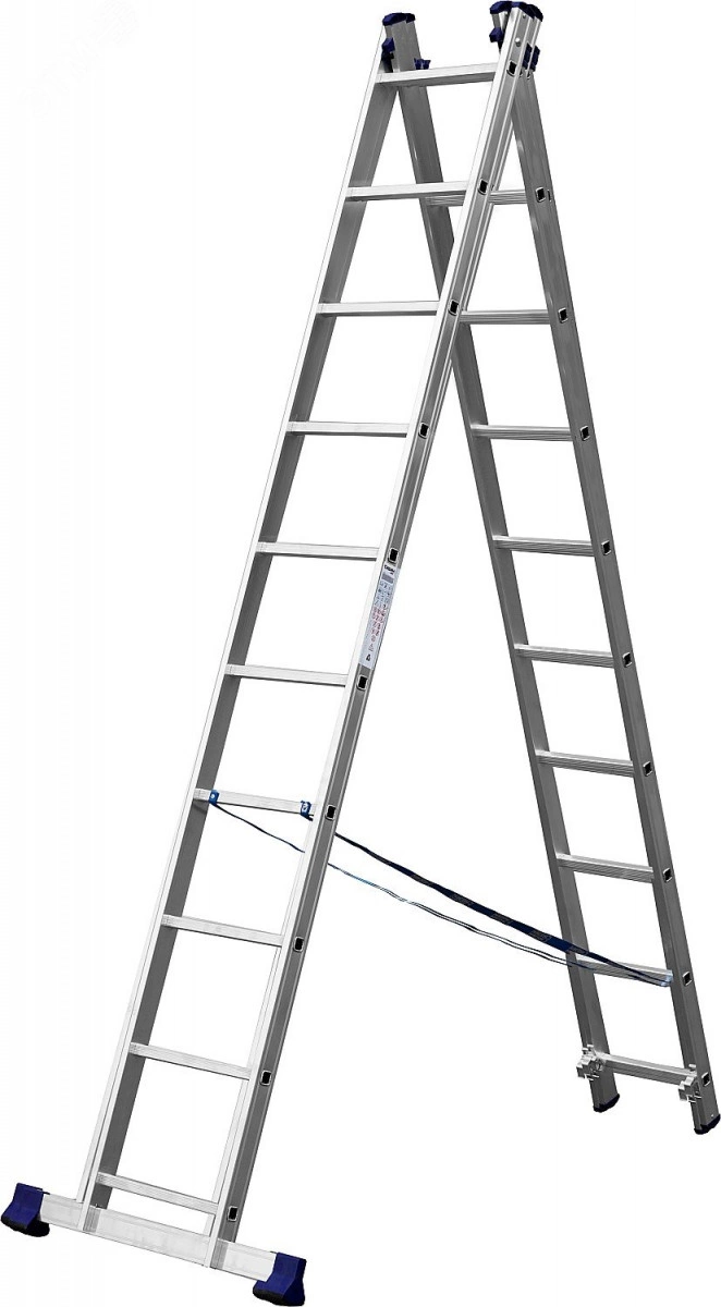 Лестница двухсекционная, алюминиевая, со стабилизатором, 10 ступеней