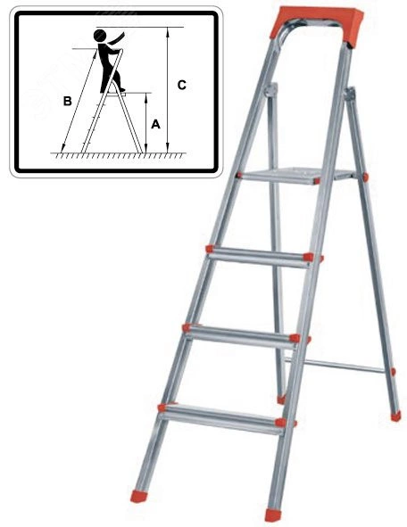 Лестница-стремянка стальная, 4 ступени, вес 5.55 кг
