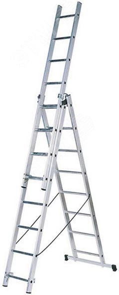 Лестница трехсекционная, алюминиевая, со стабилизатором, 11 ступеней