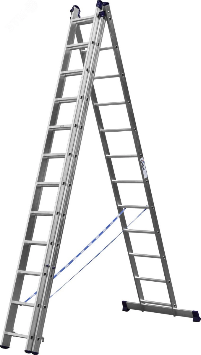 Лестница трехсекционная, алюминиевая, со стабилизатором, 12 ступеней