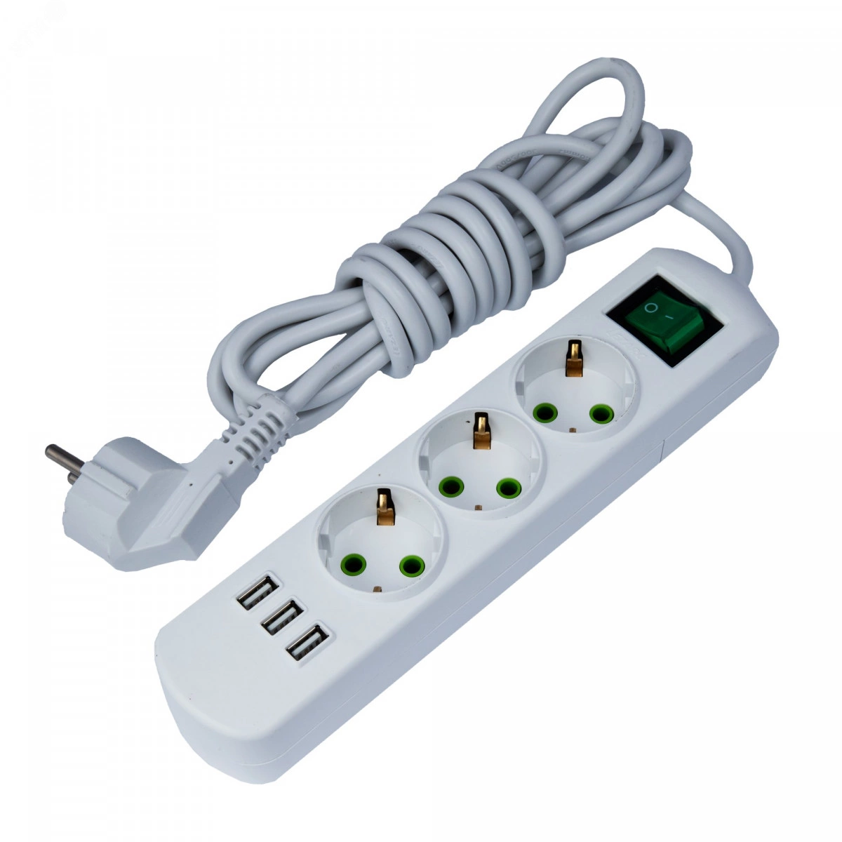 Полное описание: LETITIA Удлинитель с/з 3 входа 3 метра с выключателем c USB разъёмом