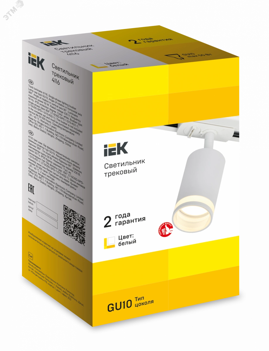 LIGHTING Светильник 4116 декоративный трековый поворотный под лампу GU10 белый IEK