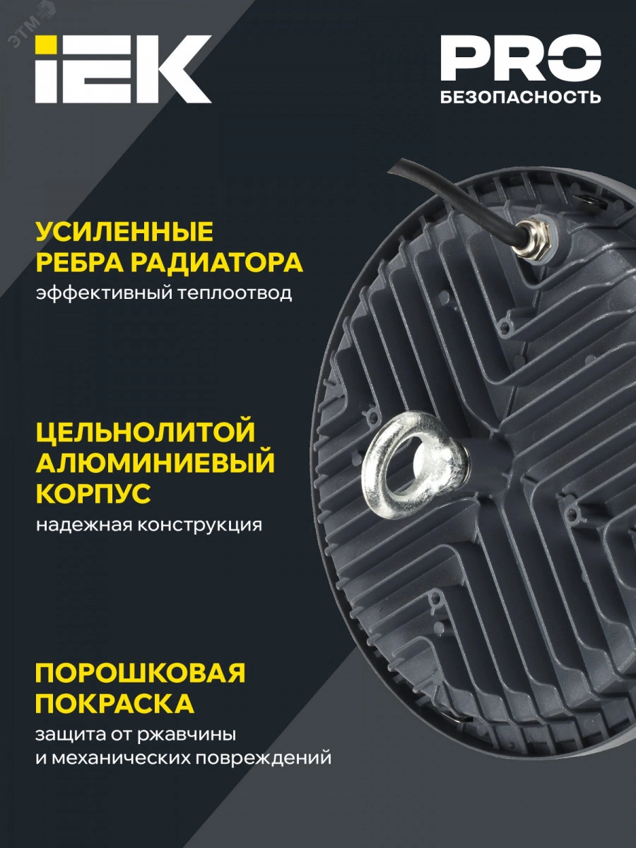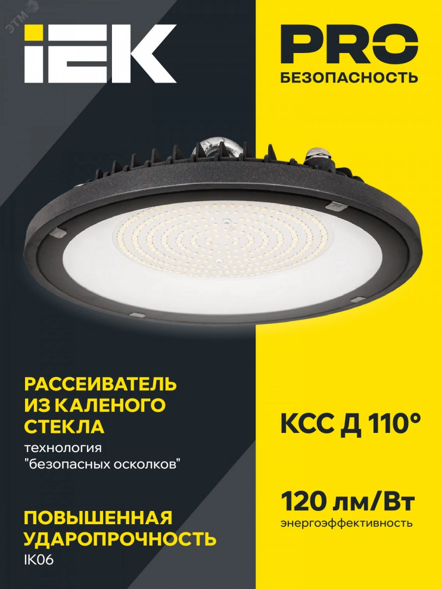 Высокая эффективность 120 лм/Вт, снижает потребление электроэнергии.|Широкий диапазон рабочих температур.|Простой монтаж на подвес, компактная конструкция.|Порошковая покраска, надежная защита от ржавчины и механических воздействий, сохранение первон