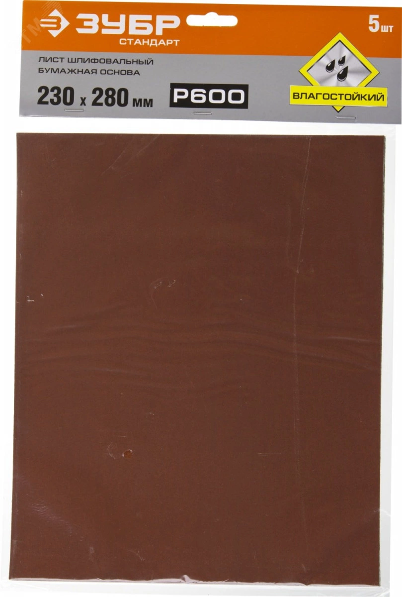 Лист шлифовальный ''СТАНДАРТ'' на бумажной основе, водостойкий 230х280мм, Р600, 5шт