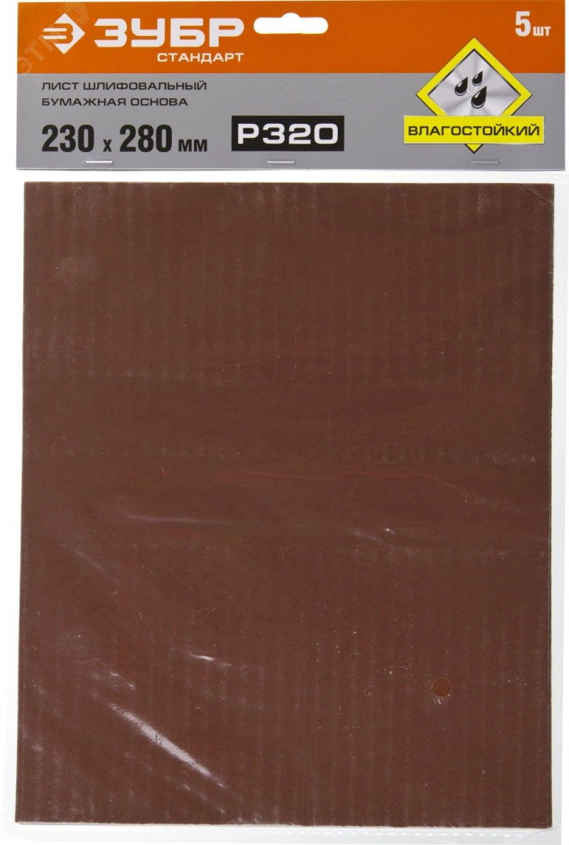 Лист шлифовальный ''СТАНДАРТ'' на бумажной основе, водостойкий 230х280мм, Р320, 5шт